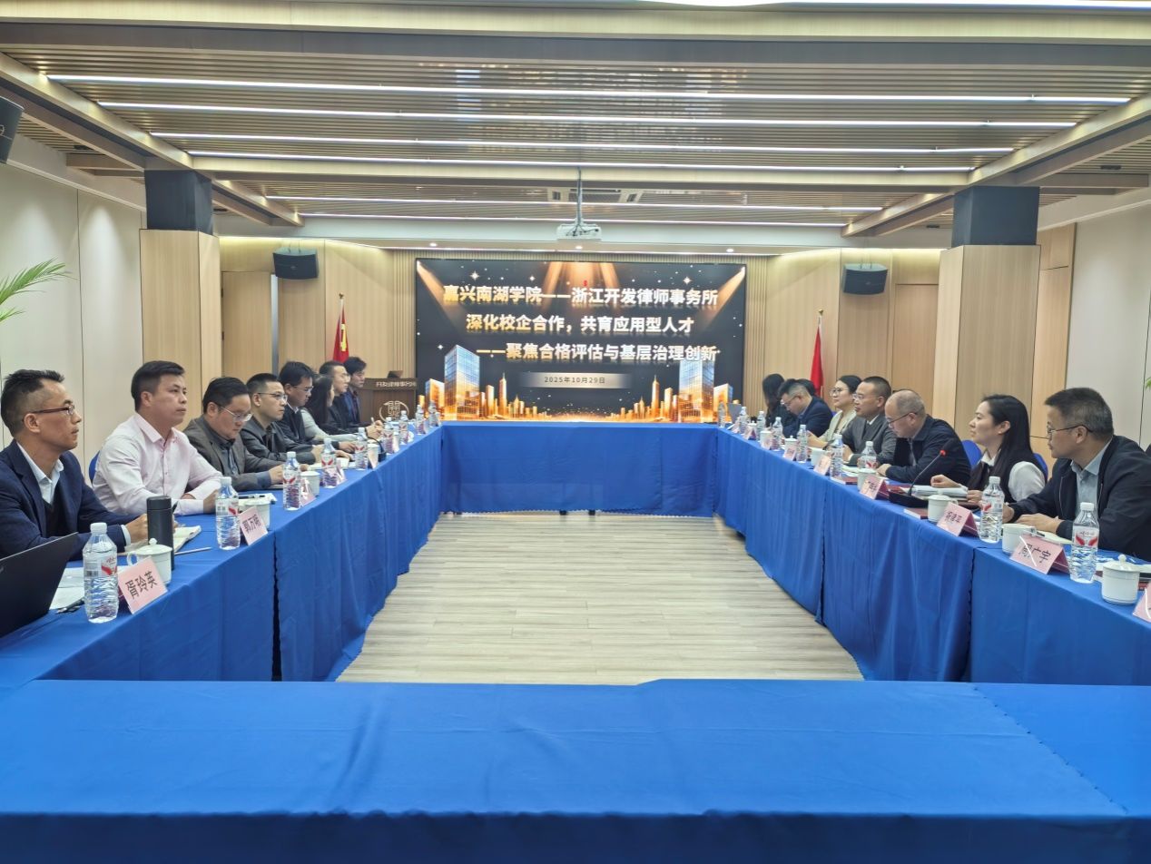 为深入落实本科教学工作合格评估要求,强化校外实践教学基地内涵建设,积极探索校企合作赋能基层治理与社会调解的新模式,10月29日下午,校长贾文胜带队赴浙江开发律师事务所调研交流。副校长赵渊,发展规划处、社会合作与国际交流处、人文与艺术学院相关负责人随同参加调研。浙江开发律师事务所主任安玉磊等热情接待了我校一行,南湖区相关负责人参加了座谈会。