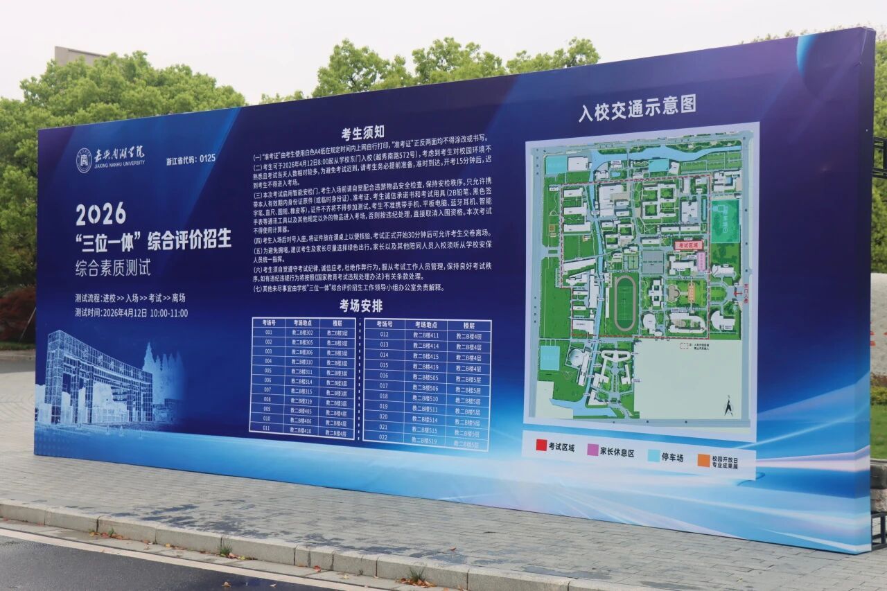 4月12日,学校2026年“三位一体”综合评价招生综合素质测试(笔试)圆满结束。校党委副书记胡文蔚,校党委委员、副校长朱蓉,省市两级教育考试院等领导到场指导工作。