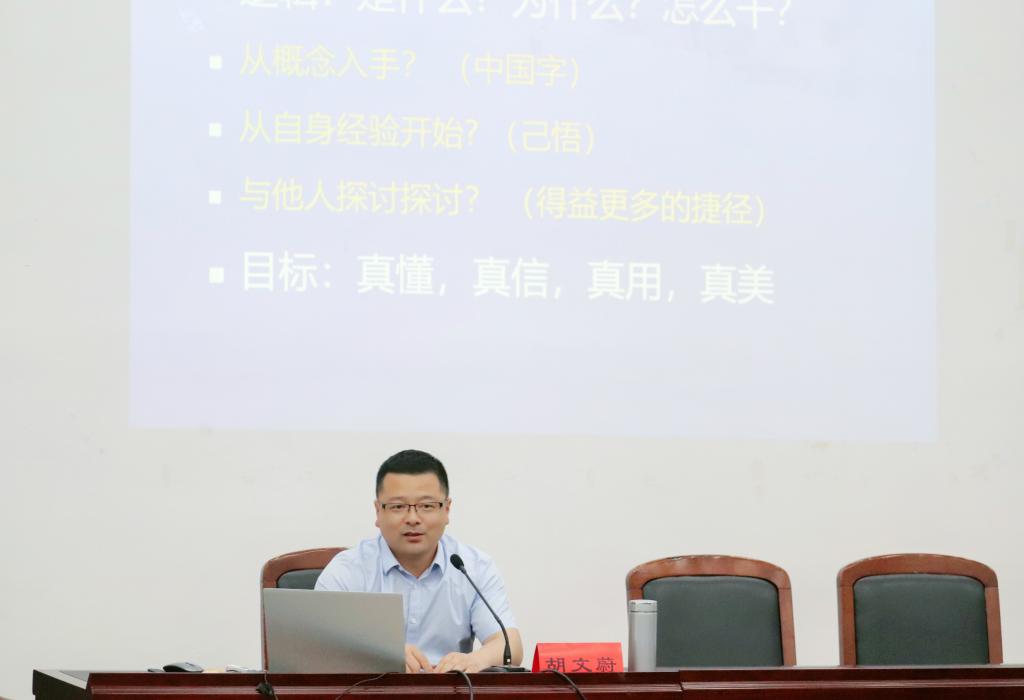 5月6日下午,在学校第三报告厅,校党委副书记胡文蔚为校业余党校学员作了一场党史学习教育专题报告。