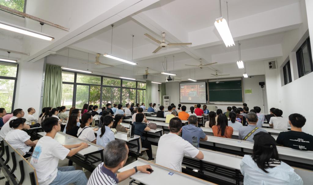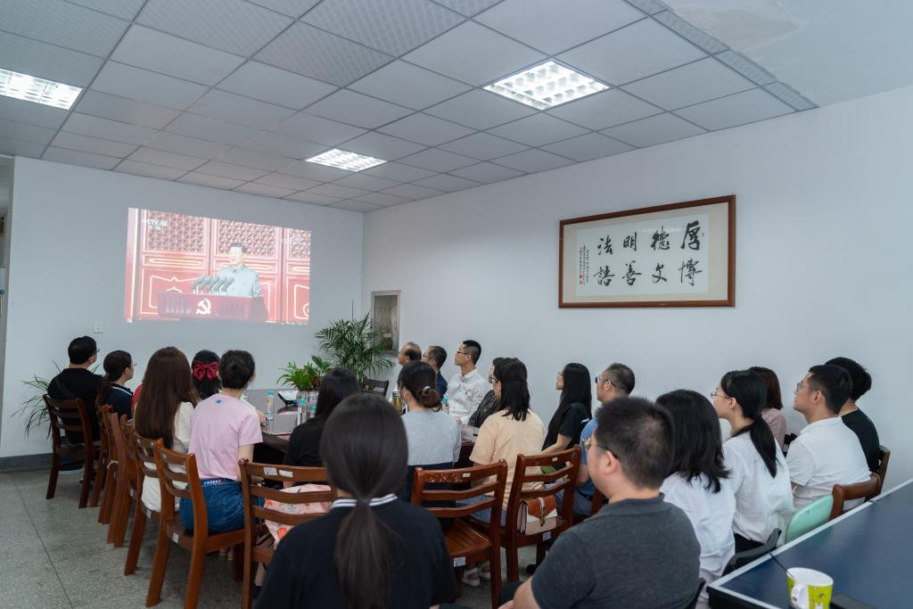 学校党委组织全体在校校领导、中层干部、机关党员,各二级党组织及教职工、学生代表,通过多种形式在第六会议室、教二报告厅、团委活动室、各院系会议室、教室等场所集中收看庆祝大会,还有不少师生自发通过网络、手机等媒介进行收看。