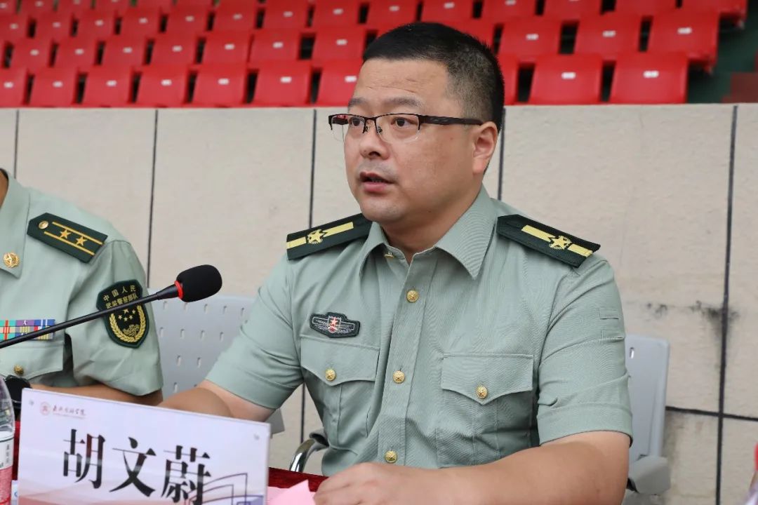 动员大会在庄严雄壮的国歌声中开始。胡文蔚作动员讲话,他指出,大学生军训是全民国防教育的重要组成部分,是高校全面贯彻党的教育方针、落实立德树人根本任务、提高国防教育质量的重要途径。学校十分重视学生军训工作,将军训作为培养中国特色社会主义合格建设者和可靠接班人的重要途径, 精心制定军训实施方案,明确军训任务和要求,严格按纲施训、科学组训,以此磨练学生精神意志、激发学生爱国热情。