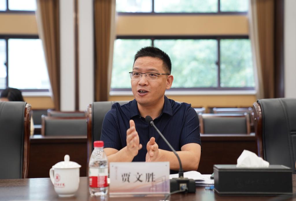 校长贾文胜介绍了学校基本情况、办学理念及发展愿景。他指出,学校初步明确了坚持围绕一个主线,突出两个指向,聚焦三大追求,提升四大推力,致力打造红色(政治)大学的样本、城市大学的标杆、应用型大学(成功转型)的典范。