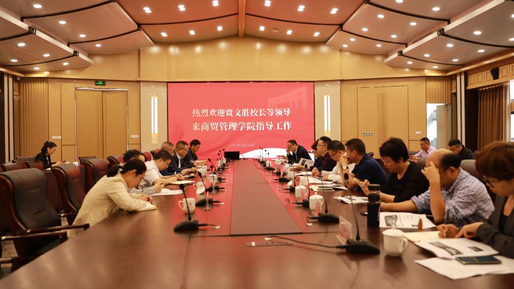 10月12日上午,校长贾文胜带队走访调研商贸管理学院并召开座谈会。校党委副书记胡文蔚、副校长朱蓉、陈加明及相关部门负责人陪同调研。商贸管理学院相关负责人及教师代表参加调研。