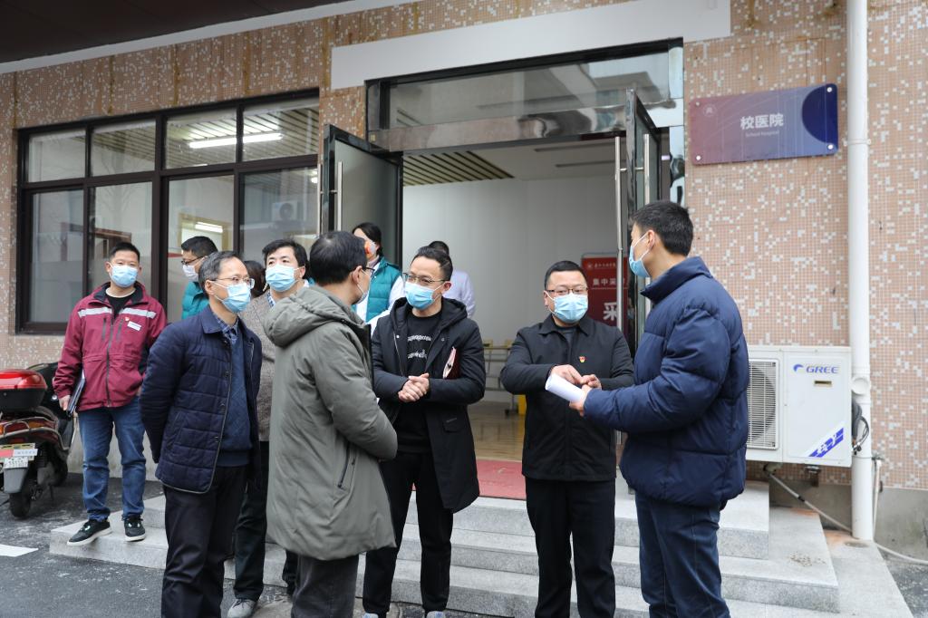督导组一行先后到校内隔离点(留观点)、校医务室、第二食堂等进行了实地查看,并就校外人员入校管理、校园疫情应急演练、开学核酸检测准备工作、重点场所消杀等进行了详细了解和指导。
