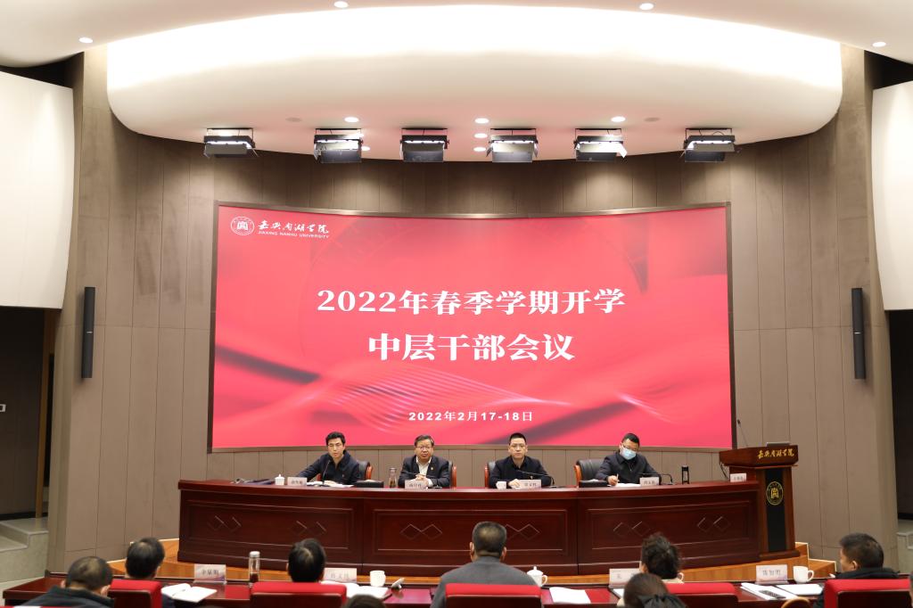 2月17日-18日,学校召开2022年春季学期开学中层干部会议。校领导盛付祥、贾文胜、郭坚刚、胡文蔚、袁志明、蒋文波、朱蓉、李泉明、陈加明出席会议,全体中层干部参加会议。