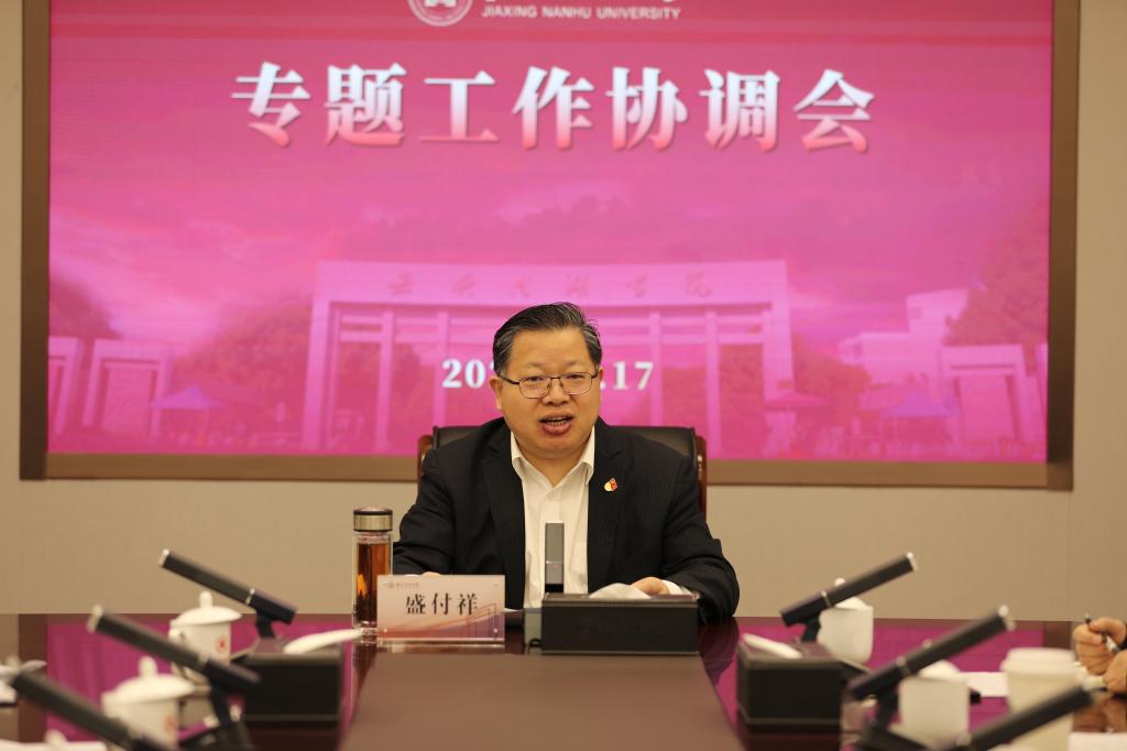 3月17日上午,嘉兴市政协副主席、校党委书记盛付祥主持召开专题工作协调会。现代金融学院及相关部门负责人参加会议。