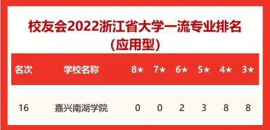 近日,全国第三方大学评价机构艾瑞深校友会网发布了2022校友会中国大学一流专业排名和校友会2022浙江省大学一流专业排名。榜单显示,学校会计学和临床医学2个专业获评六星级专业,其中会计学专业并列中国应用型本科高校“会计学”专业全国第二名;电子信息工程、工程管理、护理学3个专业获评五星级专业;电气工程及其自动化、服装设计与工程、环境工程、工业设计、经济学、国际经济与贸易、日语等8个专业获评四星级专业;嘉兴南湖学院位列浙江省应用型本科高校第16名。