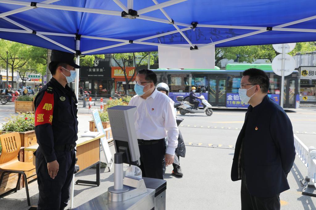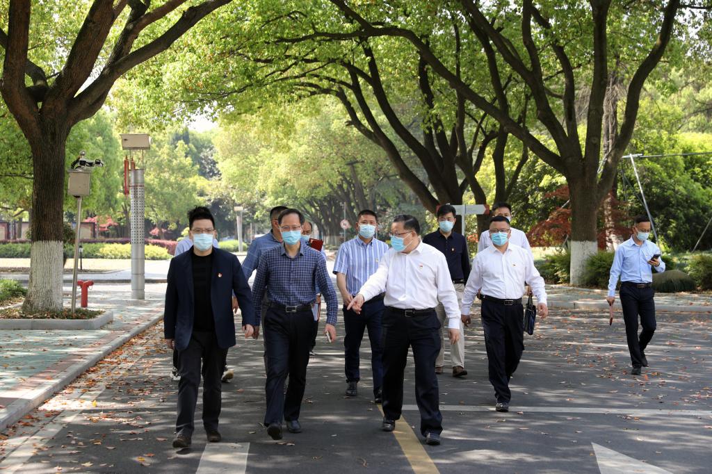 4月11日上午,嘉兴市政协副主席、校党委书记盛付祥,校长贾文胜,校党委副书记胡文蔚,副校长李泉明、陈加明一行深入校区门岗、教学楼、临时隔离点、食堂、医务室、心理咨询中心等地,检查指导疫情防控工作,并慰问防疫一线医务人员。