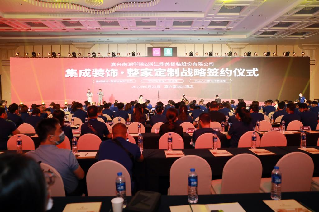 盛付祥介绍了学校的基本情况,他表示,学校与鼎美智装战略合作全面升级,是双方深化合作、共同发展、互利共赢的重要举措,对学校培养高素质应用型人才、深化产教融合、加强产学研合作具有重要意义,也必将有力推动智能科技与新材料的集成应用,加快打造一站式装修的“鼎美智装”模式,助力企业朝着中国500强目标不断迈进。他希望双方充分利用各自资源优势,密切交流合作,确保校企合作取得实效,推动智能家居产业集群发展,为嘉兴奋进“两个率先”作出新的更大贡献。