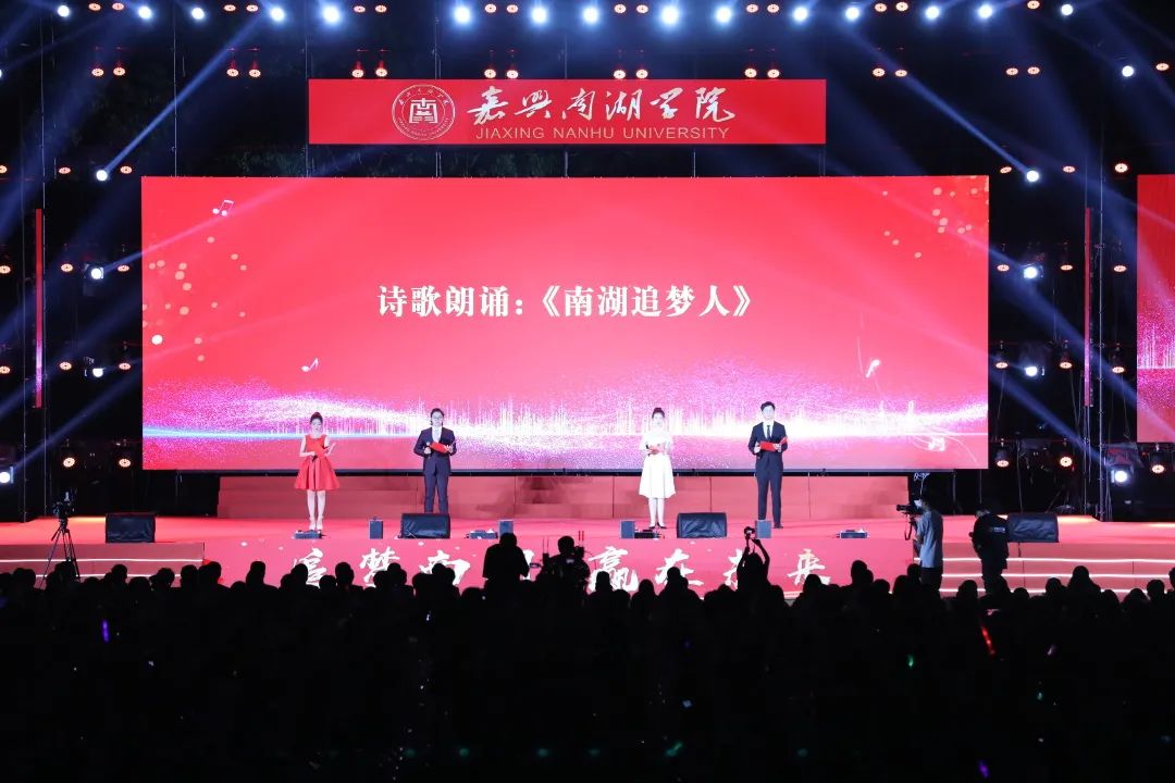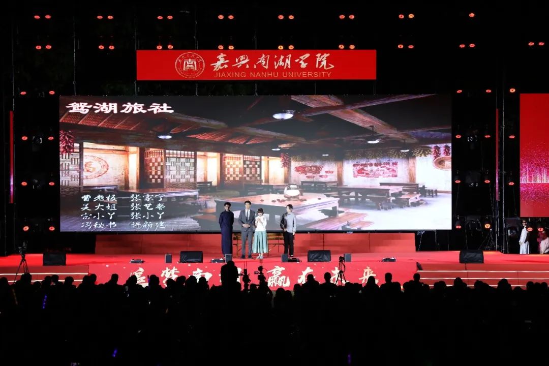 典礼结束后,全体师生共同观看了精彩的迎新晚会。迎新晚会在一片青春洋溢的氛围中拉开帷幕。由学校武术协会与海华武馆共同展现的《江南武魂》,为晚会注入了勇猛精进、坚毅果敢的传统武术之魂。诗歌朗诵《南湖追梦人》表达了对学校建设“三个大学”的坚定信心和美好展望。以中共一大为背景的红色话剧《南湖1921》(节选)充分将红色文化底蕴有机地融入艺术的意象与实践中,演出了中国革命红船起航地高校学子的精神风貌,点燃了南湖青年信念之光的星星之火。迎新晚会在大合唱节目《走向复兴》中圆满落下了帷幕。