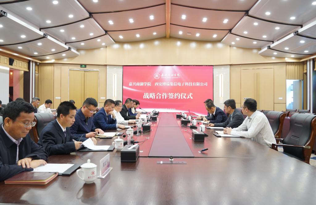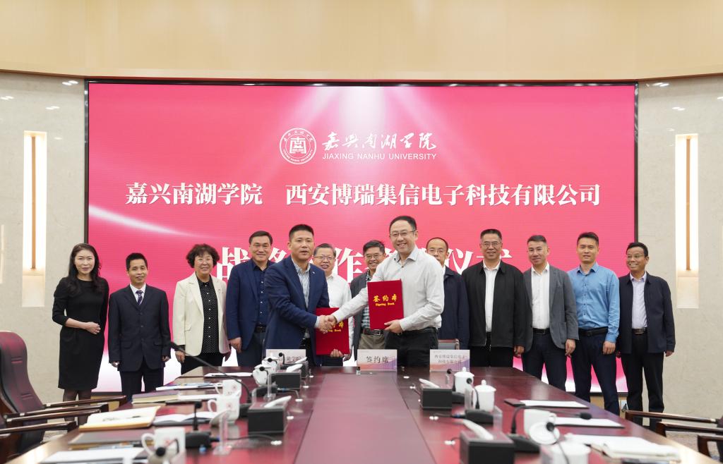 5月9日上午,嘉兴南湖学院与西安博瑞集信电子科技有限公司举行战略合作签约仪式。嘉兴市政协副主席、校党委书记盛付祥,西安博瑞集信电子科技有限公司董事长、总经理张博分别致辞,仪式由袁志明副校长主持,学校相关职能部门、信息工程学院负责人,及企业相关负责人参加签约仪式。
