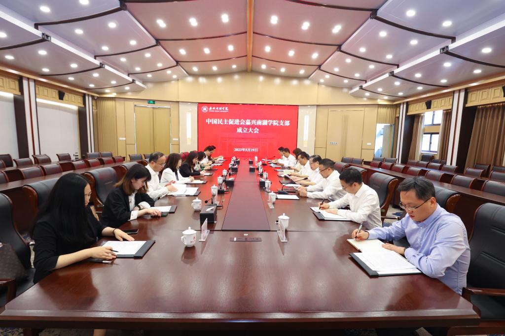 民进嘉兴南湖学院支部全体会员,党委(校长)办公室、组织部(统战部)、宣传部有关人员参加了会议。