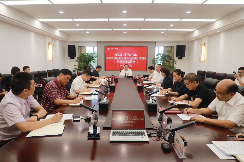 9月28日下午,嘉兴南湖学院举行校党委(扩大)会议,传达学习习近平总书记在浙江考察时的重要讲话精神和省、市领导干部会议精神。