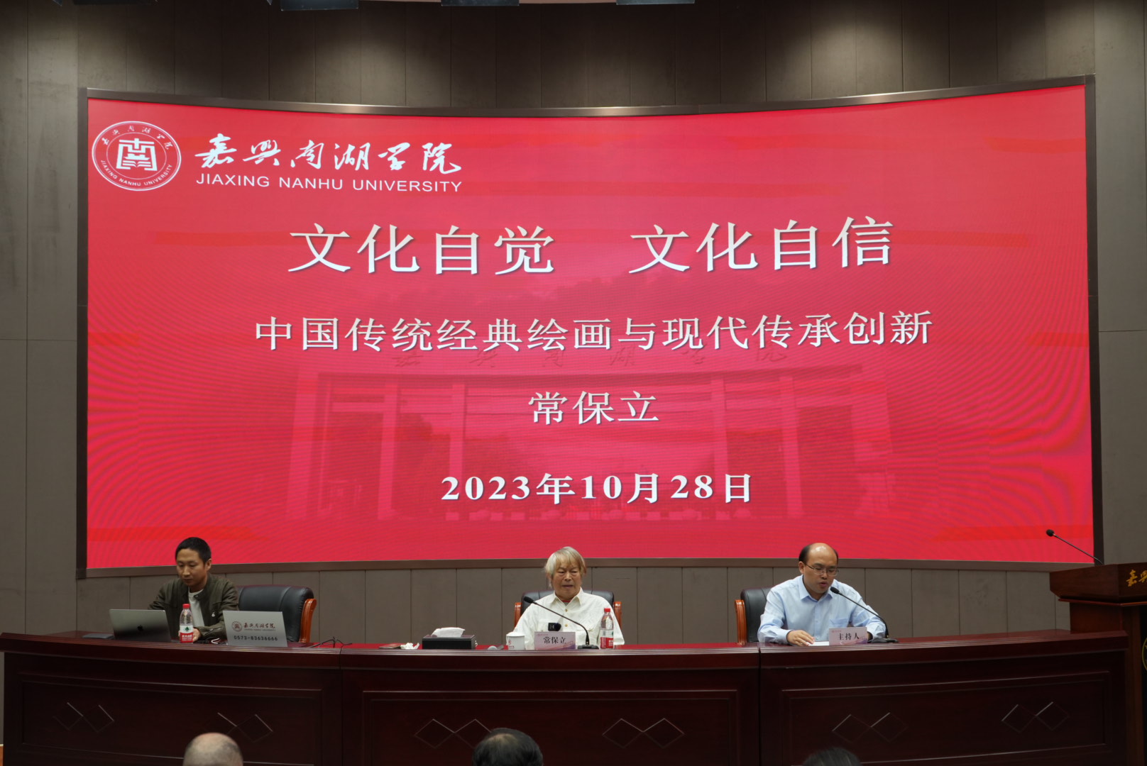 10月28日上午,嘉兴南湖学院第一报告厅开展了“文化自信 文化自觉——中国传统经典绘画与现代传承创新”专题的讲座。本次讲座由故宫博物院首席模搨官、摹画组组长常保立先生主讲,嘉兴市政协副主席、校党委书记盛付祥应邀出席,人文与艺术学院、时尚设计学院师生及其他对艺术感兴趣的师生现场聆听。