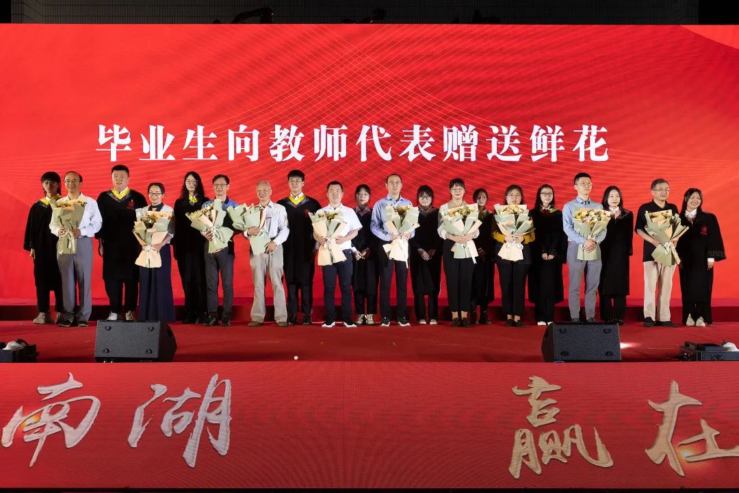 典礼上,毕业生代表还向教师代表敬献鲜花,以谢师恩。