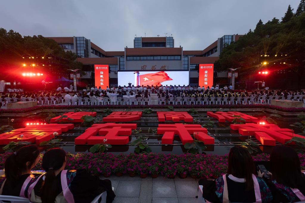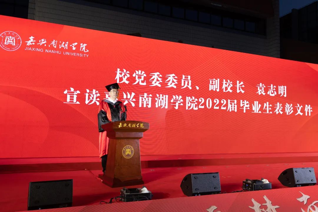 6月13日晚,嘉兴南湖学院2022届毕业典礼暨学位授予仪式在文化广场举行。校领导盛付祥、贾文胜、郭坚刚、胡文蔚、袁志明、蒋文波、朱蓉、李泉明出席典礼,典礼由校党委副书记胡文蔚主持。全体中层干部,毕业班辅导员、班主任,2022届毕业生代表参加典礼。