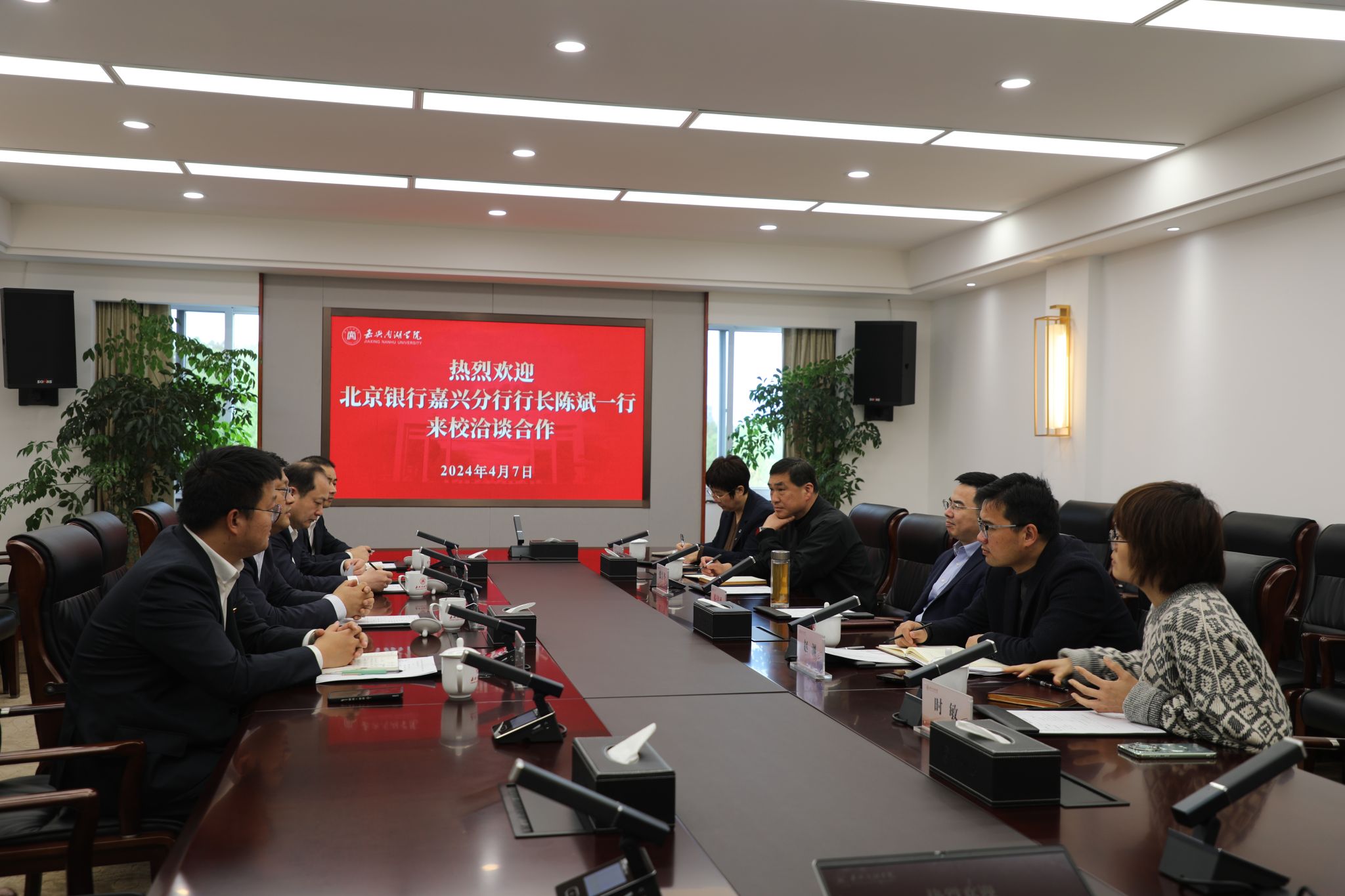 4月7日下午,北京银行嘉兴分行行长陈斌一行来访,校党委书记倪沪平接待陈斌一行,双方就校招方式、实习基地建设、科创金融、高校建设经费捐助等方面进行了深入交流,副校长赵渊和北京银行嘉兴分行副行长吴龙参加洽谈。