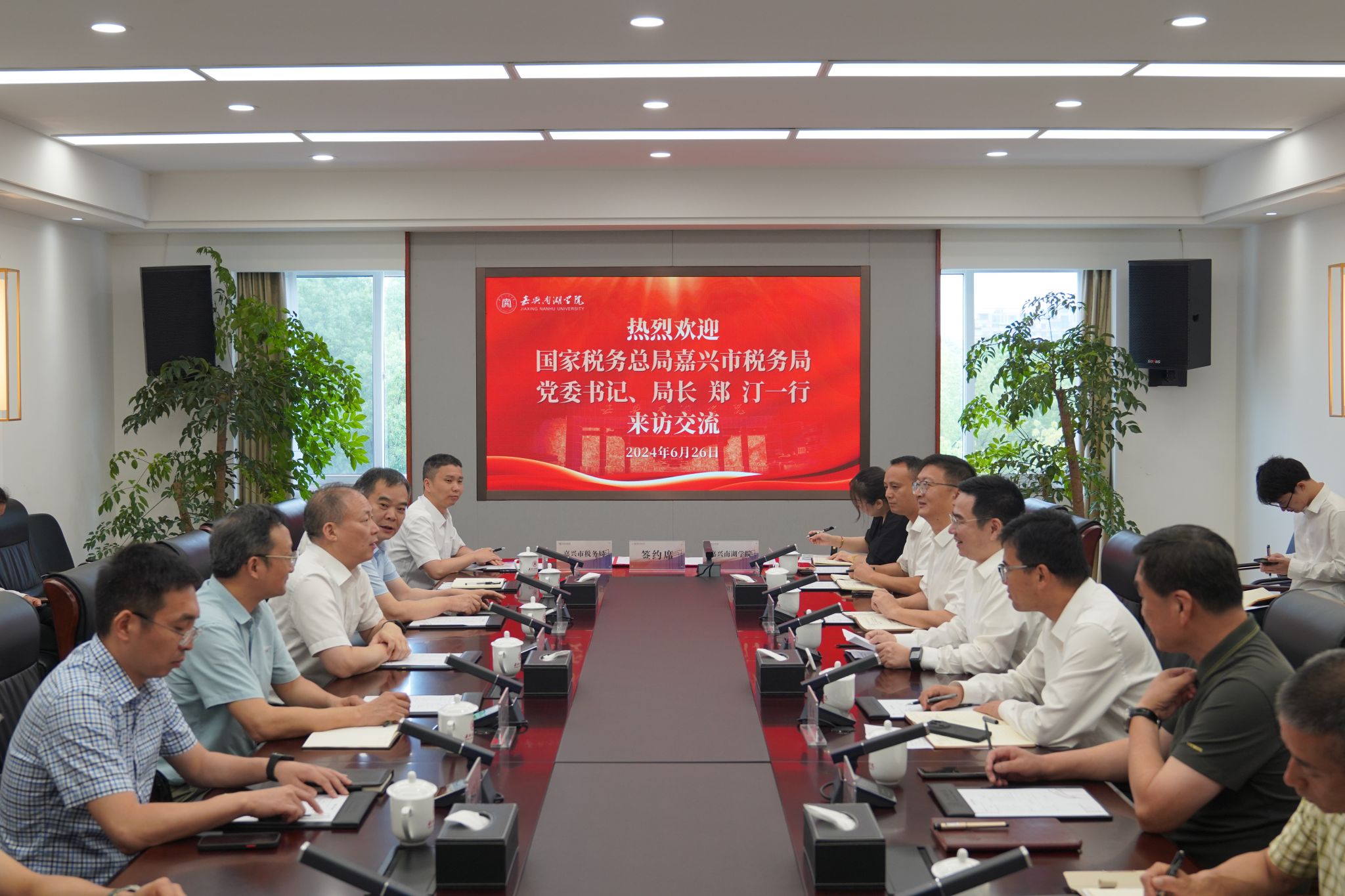 6月26日上午,嘉兴南湖学院与国家税务总局嘉兴市税务局战略合作签约仪式在学校举行。校党委书记倪沪平,嘉兴市税务局党委书记、局长郑汀分别致辞,仪式由赵渊副校长主持。