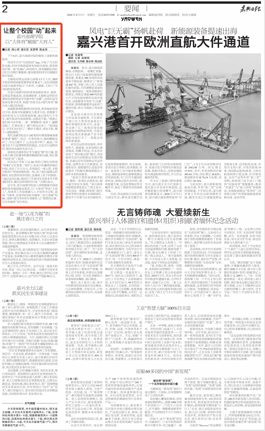嘉兴日报:让整个校园“动”起来,嘉兴南湖学院以“大体育”赋能“大育人”-嘉兴南湖学院