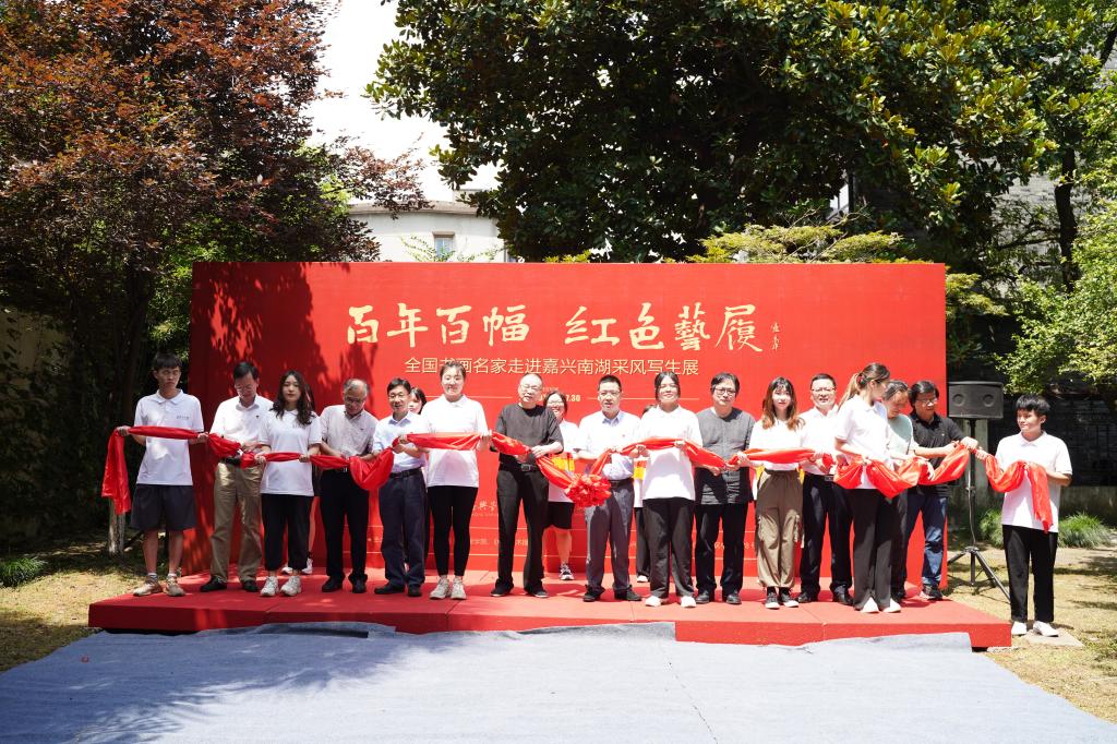 今天上午十点,“百年百幅·红色艺履——全国书画名家走进嘉兴南湖采风写生作品展”嘉兴巡展开幕式在嘉兴美术馆隆重举行。浙江省美协副主席、浙江画院院长孙永,中国美术学院博导张谷旻,嘉兴画院院长、嘉兴美术馆馆长凌加春,嘉兴市美协主席孙海峰,嘉兴学院党委书记卢新波,嘉兴南湖学院校长贾文胜等领导与嘉宾出席开幕式,仪式由《中国美术报》社社长、总编辑王平主持。