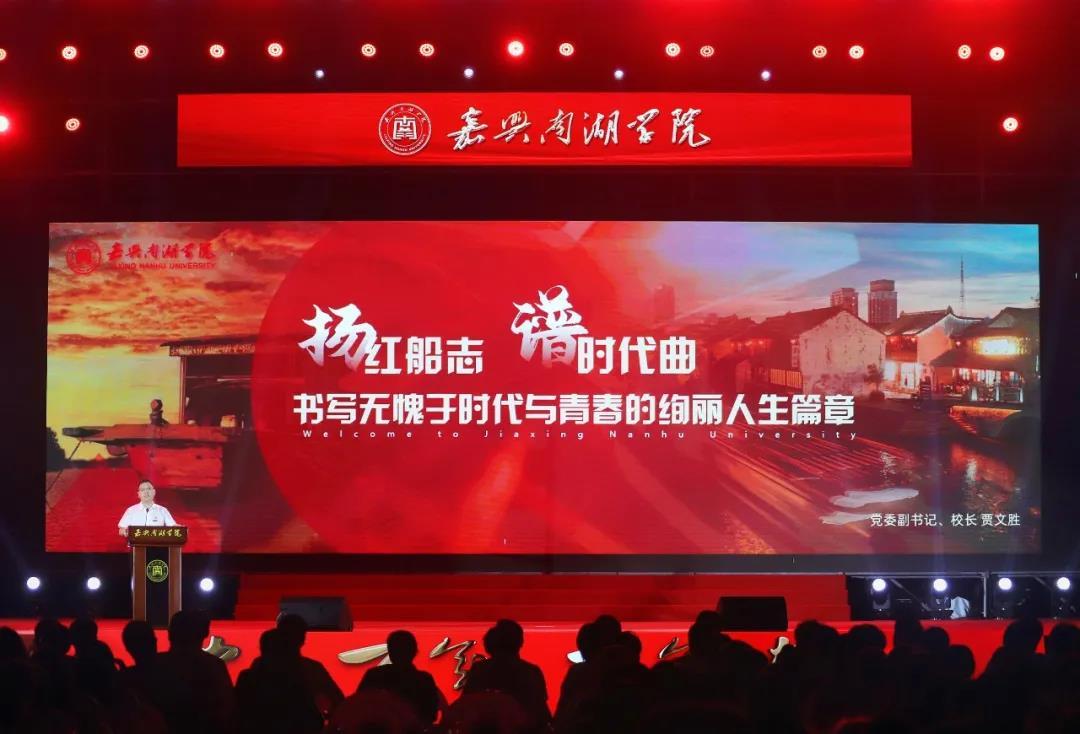 日前,嘉兴南湖学院举行2021级新生开学典礼,校领导以“扬红船志 谱时代曲 书写无愧于时代与青春的绚丽人生篇章”为题,为2130名新生上了“开学第一课”。