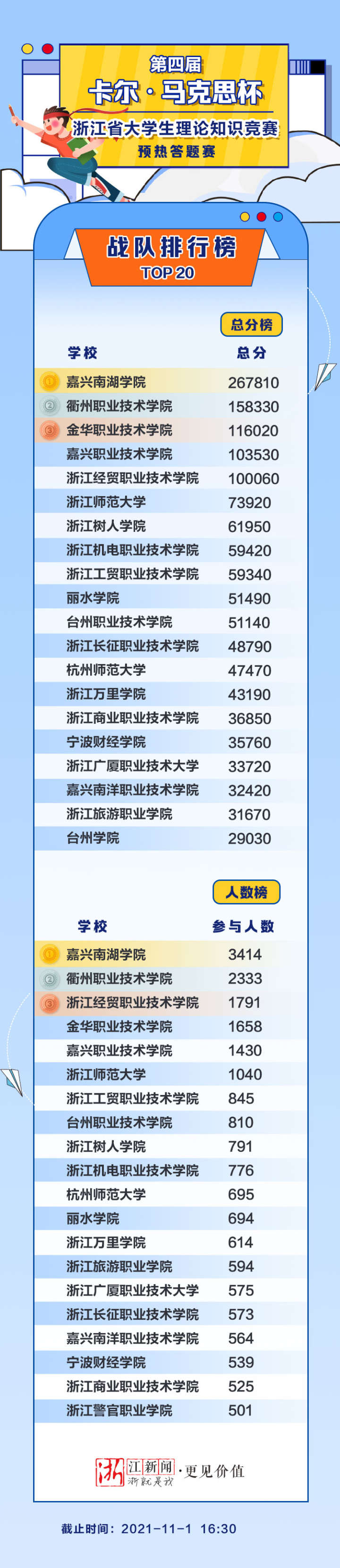 可以看到,无论是战队总分还是参与人数,嘉兴南湖学院都是遥遥领先,在这里给他们点个赞!
