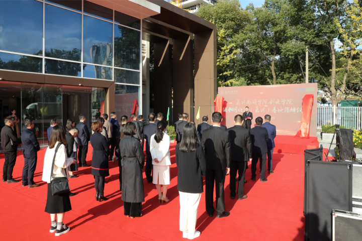 嘉兴市政协副主席、嘉兴南湖学院党委书记、嘉兴经开区管委会主任盛付祥,嘉兴南湖学院校长贾文胜、上海浦东软件园股份有限公司财务总监沈旭云以及经开区相关委领导和部门负责人出席揭牌仪式。
