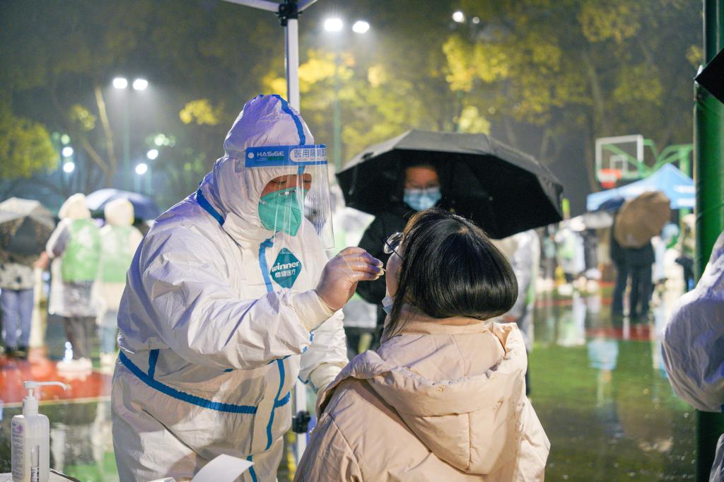 在学校疫情防控工作领导小组统一部署和集中领导下,相关部门及时响应,迅速集结学生党员、团员干部、南湖先锋连、大学生记者团等一批自愿者力量投入核酸检测保障工作中,并在现场设置物资保障点,为前来检测的师生员工提供雨衣、姜茶、口罩等物品。
