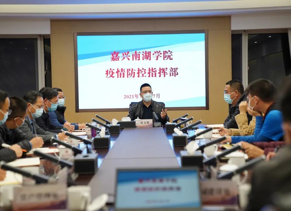 12月17日晚上,嘉兴南湖学院再次召开疫情防控指挥部工作会议。校长贾文胜用两个“非常”、两个“继续”和两个“确保”对近日学校疫情防控相关工作进行总结和再部署。他表示,自12月16日学校封校以来,全校师生都非常辛苦,但在配合疫情防控的相关工作中也都表现非常出色。他指出,要继续保持战斗状态,绷紧疫情防控这根弦;要继续保持优良作风,执行命令精准有力,以上率下担当有为,干在前面先人一步,充分展示“南湖人”的精神面貌。他要求,要确保打赢这场疫情防控战,并以此为契机仔细梳理校内的房产、人员和隐患;要确保四六级考试平稳有序进行,同时做好相关同学的思想政治工作。