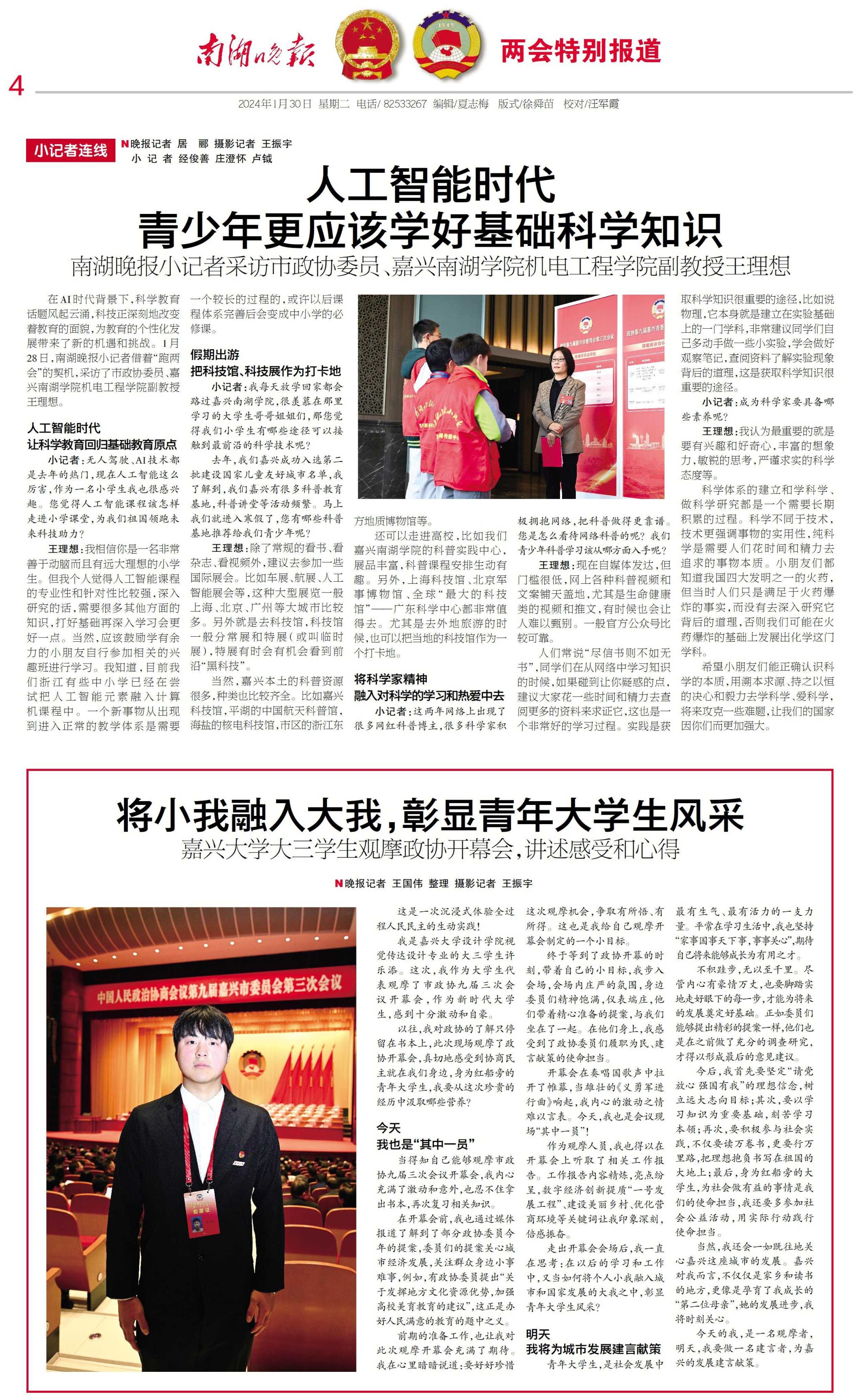 南湖晚报:小记者采访市政协委员、嘉兴南湖学院副教授王理想(嘉兴两会报道)