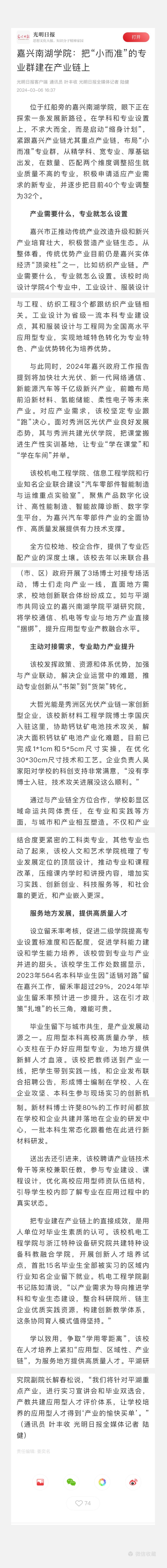 光明日报:嘉兴南湖学院把“小而准”的专业群建在产业链上