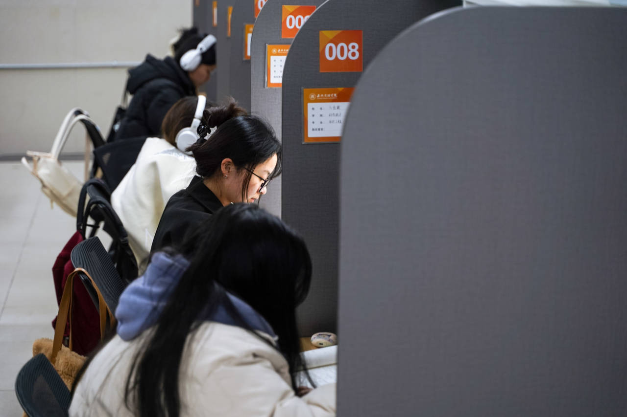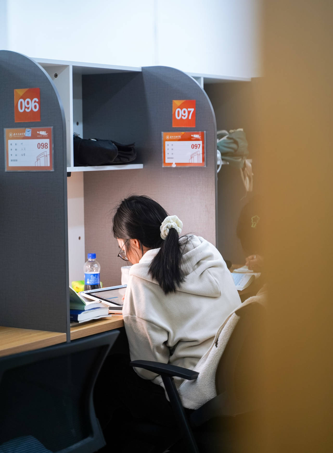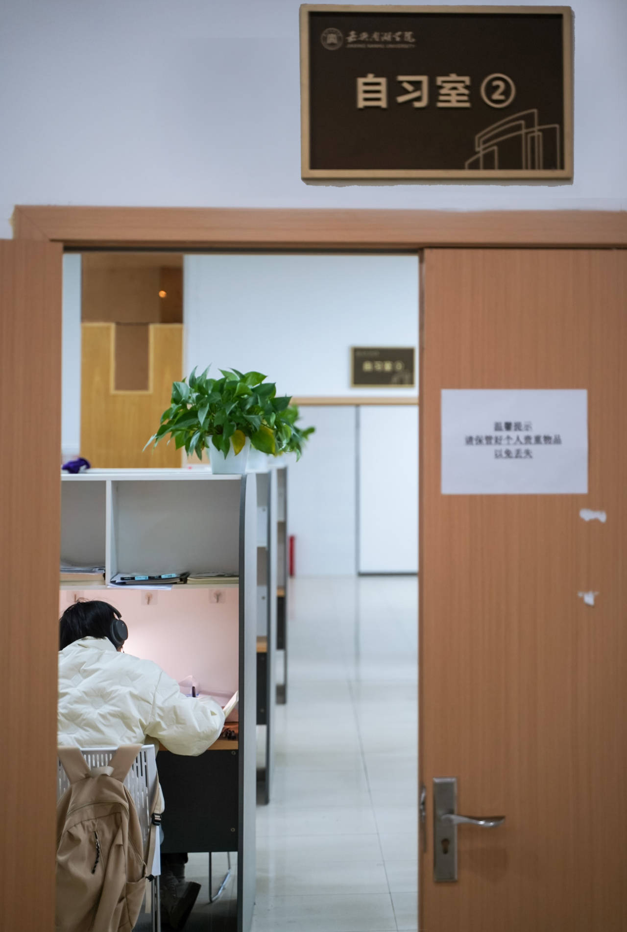 3月13日晚上九点多,在嘉兴南湖学院的考研教室,仍有不少同学在这里自习。