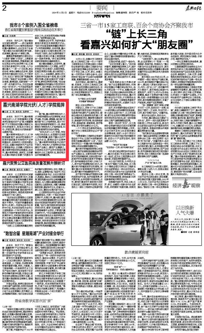 嘉兴日报:嘉兴南湖学院光伏产业(人才)学院揭牌