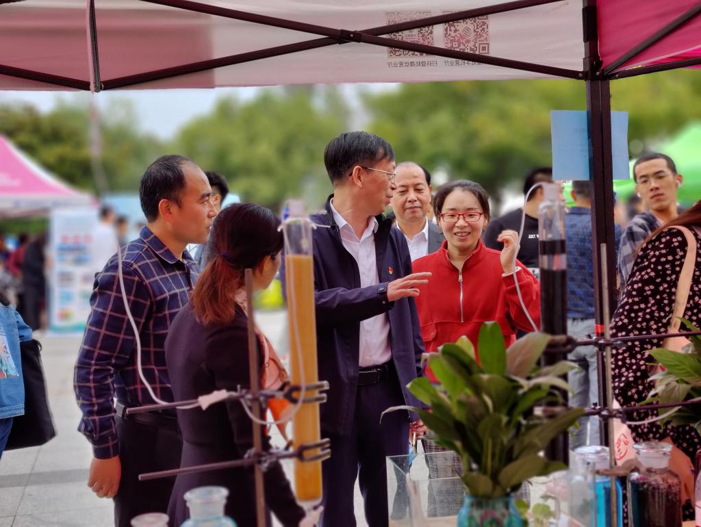 赵惠明结合“五彩嘉兴”的概念分别介绍了学院“红色”化工、“蓝色”高材、“青色”轻化、“金色”生物、“绿色”环境五个专业的基本情况和发展特色,他希望全院广大师生可以通过这次专业联展的机会,把课本上的理论知识运用到现实生活中来,从中收获到不一样的乐趣和体验。
