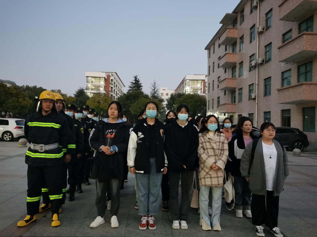 本次演练包括模拟火情、火警报警、消防救援三个环节。参演学生在相关人员的引导下有条不紊地用湿毛巾掩住口鼻迅速跑出宿舍。南湖消防救援大队相关人员在观摩后对本次演练暴露出的问题给予了指导。