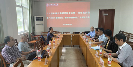 2022年9月22日下午,九三学社嘉兴南湖学院支社第一次社员大会暨“矢志不渝跟党走、携手奋进新时代”主题学习会在嘉兴南湖学院召开。九三学社嘉兴市委办公室主任吴燕应邀出席会议。会议由支社主委周余庆主持。