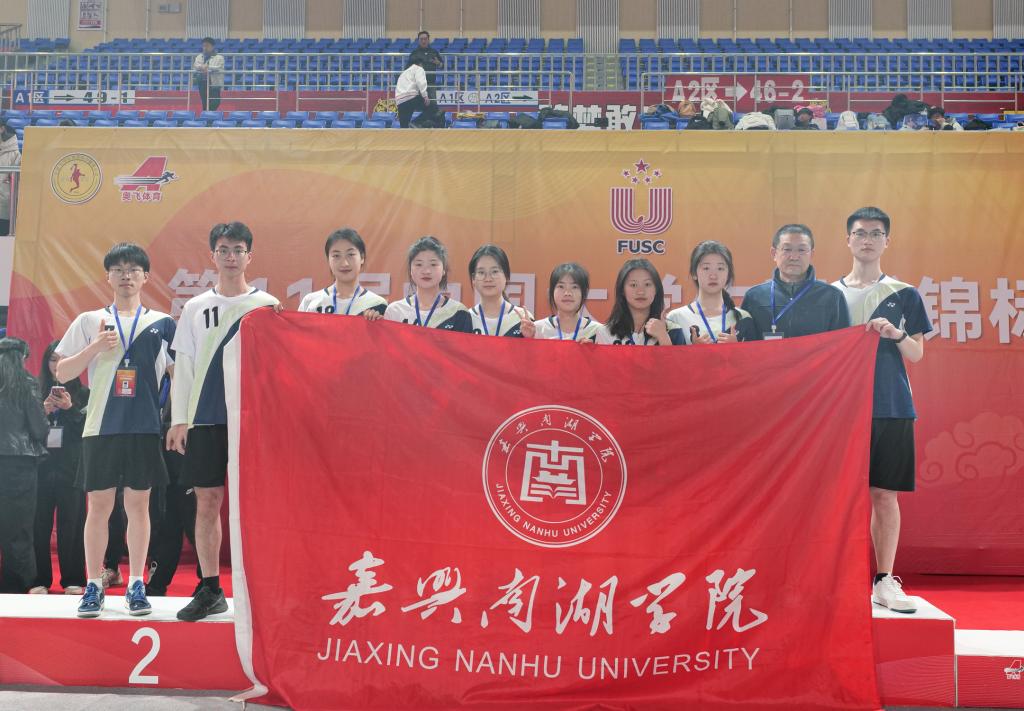 面对强有力的劲敌,嘉兴南湖学院毽球队在教练陈浩老师的指导下,团结奋斗、搏至无憾,最终突破重围,荣获一金三银的好成绩,同时还获得混合团体接力计数赛第二名、花毽规定套路甲组女子单人赛第四名、女子甲组盘踢计数赛第六名、女子甲组三人团体赛第六名、毽球三人位置接力赛甲组第七名、甲组团体总分第七名、女子甲组双人毽球第八名的优秀成绩。